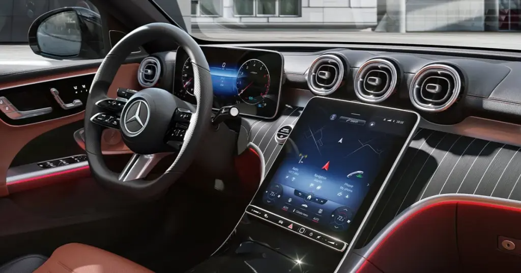 Step inside the 2024 C-Class, and you'll be greeted by a luxurious cabin adorned with a widescreen infotainment system. The intuitive MBUX infotainment system with voice control, navigation, and smartphone integration keeps you connected and entertained.