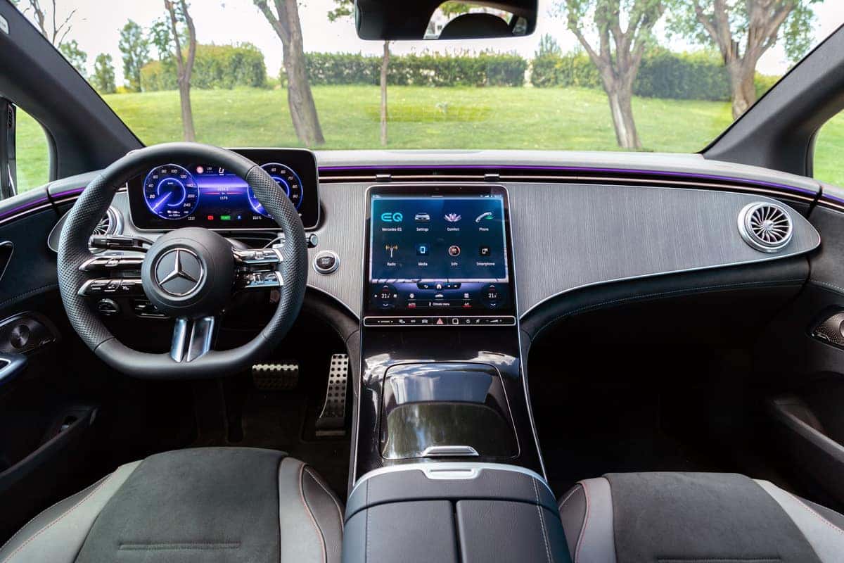 The Mercedes-Benz EQE and Tesla Model X stand out in terms of interior, cargo, and comfort. The EQE's cabin features a sleek and modern design, with high-quality materials and advanced technology throughout. The car's infotainment system is intuitive and easy to use, while its advanced driver assistance features offer added safety and convenience. The EQE also provides ample cargo space, with a trunk capacity of up to 27.3 cubic feet, making it perfect for road trips or daily errands. Additionally, the EQE's interior is designed to be comfortable and quiet, with a smooth and responsive ride. In contrast, while the Model X's interior is spacious, its infotainment system is often criticized for being overly complicated and distracting. The Model X also lacks the EQE's quiet and comfortable ride, making it less suitable for longer trips.