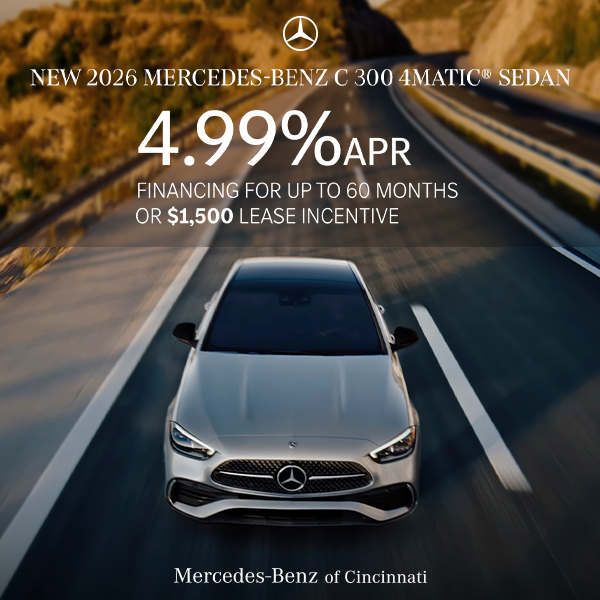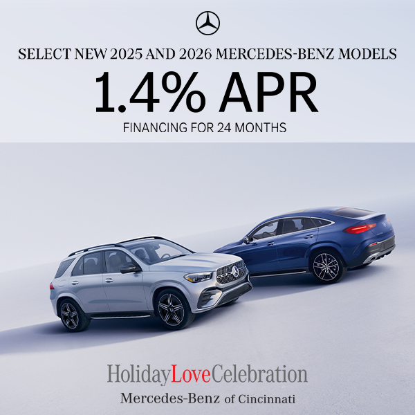 *Offer valid on 2025 CLA Models, 2025 C-Class Models, 2025 EQB Models, 2025 E-Class Models, 2025 EQE Models, 2025 EQS Models, 2025 S-Class Models, 2025 CLE Models, 2025 GLA Models, 2025 GLB Models, 2025 GLC Models, 2025 GLE Models, 2025 GLS Models, 2025 SL Models, 2025 GT Models, 2026 CLA Models, 2026 C-Class Models, 2026 EQB Models, 2026 E-Class Models, 2026 EQE Models, 2026 EQS Models, 2026 S-Class Models, 2026 CLE Models, 2026 GLA Models, 2026 GLB Models, 2026 GLC Models, 2026 GLE Models, 2026 GLS Models, 2026 SL Models Qualified customers only. 1.40% APR financing for 24 months at $42.28 per month, per $1,000 financed. Excludes leases and balloon contracts. Available only at participating authorized Mercedes-Benz dealers through Mercedes-Benz Financial Services. Must take delivery of vehicle by February 2, 2026. Specific vehicles are subject to availability and may have to be ordered. Subject to credit approval by lender. Rate applies only to Mercedes-Benz 2025 and 2026 model vehicles listed. Not everyone will qualify. See your authorized Mercedes-Benz dealer for complete details on this and other finance offers. Not valid in Puerto Rico. Advertised Price EXCLUDES all optional dealer offered items, accessories, or product addendums optionally selected by the purchaser, applicable official taxes and fees, and a $387 documentary service charge.